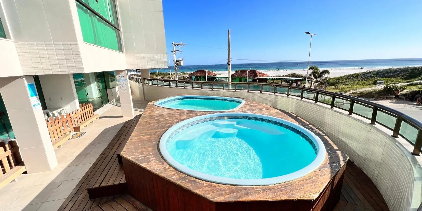 Arraial do Cabo se encuentra en Arraial do Cabo y ofrece un balcón con vistas al mar y a la piscina, además de piscina al aire libre abierta todo el año, centro de fitness y sauna.