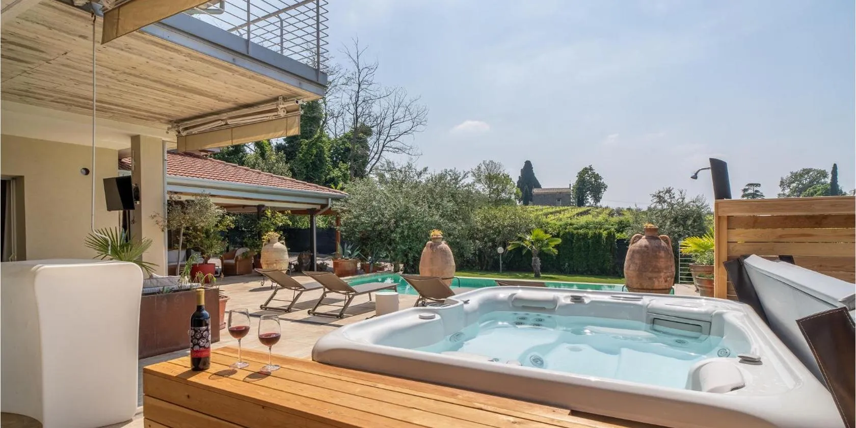 Villa Mexico-Con Piscina e Whirpool, que cuenta con piscina de temporada al aire libre y terraza, ofrece alojamiento en Lazise con wifi gratis y vistas al jardín.