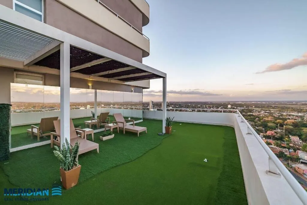 Moderno Depto en Carmelitas, que tiene piscina al aire libre, centro de fitness y terraza, dispone de alojamiento en Asunción con wifi gratis y vistas al jardín.